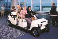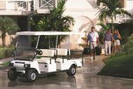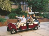 Power Source | Electric | Horsepower | 3.7 hp @ 3,400 rpm (continuous) 21 hp @ 2,000 rpm (peak) | Batteries | Eight 6-volt, Standard: 115 min. @ 75amps; Heavy Duty: 145 minutes @ 75 amps | Charger | Automatic, computer-controlled 48-volt DC, 17 amp, UL and CUL listed | Steering | Self-adjusting rack and pinion | Front Suspension | Independent leaf spring with dual hydraulic shocks | Seating Capacity | 6 | Ground Clearance | 4.5 in (11.4 cm) | Speed Range | 5-17 mph (8-27.3 kph) | Brakes | 4-wheel mechanical drum | Park Brake | Foot-operated, multi-lock | Frame Chassis | Aluminum I-beam | Body | ArmorFlex® | Body color | Matching paint over molded in color | Front tires | 18 x 8.50-8, 6-ply rated, premium tread | Rear tires | 18 x 8.50-8, 6-ply rated, premium tread | Overall Length | 124 in (315 cm) | Overall Width | 47.3 in (120.1 cm) | Overall Height | 48 in (121.9 cm) | Wheelbase | 98.5 in (250.2 cm) | Tread | 34.5 in/38.6 in (87.6 cm/97.8 cm) | Dry Weight (Less Batteries) | 590 lb (267.9 kg) | Vehicle Warranty | 2-year, limited; 4-year batteries; 4-year limited battery warranty | Electrical System | 48-volt | Rear Suspension | Leaf springs with dual hydraulic shocks | Instrumentation | Battery capacity indicator, Battery warning light | Total Vehicle Capacity | 1,500 lb (681 kg) | Turning Radius | 12 ft (3.7 m) | Drive Motor | 48-volt shunt/sepex | Drive Unit | 12.3:1 direct-drive axle, double-reduction helical gear | Controller | 500A solid state | Outside Radius Circle | 24.7 ft (7.5 m) dia | Intersecting Aisle Radius | 7.5 ft (228.6 cm) | Stabilizer Bar | No | Light Package | Standard |