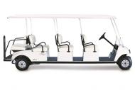 Power Source | Electric | Horsepower | 3.7 hp @ 4,097rpm (continuous) 21 hp @ 1,663 rpm (intermittent) | Batteries | Eight 6-volt, Standard: 115 min. @ 75amps; Heavy Duty: 145 minutes @ 75 amps | Charger | Automatic, computer-controlled 48-volt DC, 17 amp, UL and CUL listed | Steering | Self-adjusting rack and pinion | Front Suspension | Independent leaf spring with dual hydraulic shocks | Seating Capacity | 8 | Ground Clearance | 4.5 in (11.4 cm) | Speed Range | 5-17 mph (8-27.3 kph) | Brakes | 4-wheel mechanical drum | Park Brake | Foot-operated, multi-lock | Frame Chassis | Aluminum I-beam | Body | ArmorFlex® | Body color | Matching paint over molded in color | Front tires | 18 x 6.50-8, 6-ply rated, premium tread | Rear tires | 18 x 6.50-8, 6-ply rated, premium tread | Overall Length | 157 in (398.8 cm) | Overall Width | 47.3 in (120.1 cm) | Overall Height | 48 in (121.9 cm) | Wheelbase | 131.5 in (334 cm) | Tread | 34.5 in/38.6 in (87.6 cm/97.8 cm) | Dry Weight (Less Batteries) | 704 lb (319.6 kg) | Vehicle Warranty | 2-year, limited; 4-year batteries; 4-year limited battery warranty | Electrical System | 48-volt | Rear Suspension | Leaf springs with dual hydraulic shocks | Instrumentation | Battery capacity indicator, Battery warning light | Total Vehicle Capacity | 1,500 lb (681 kg) | Turning Radius | 15.9 ft (4.8 m) | Drive Motor | 48-volt shunt-wound | Drive Unit | 12.3:1 direct-drive axle, double-reduction helical gear | Controller | 500A solid state | Outside Radius Circle | 32.6 ft (9.9 m) dia | Intersecting Aisle Radius | 9 ft (274.3 cm) | Stabilizer Bar | No | Light Package | Standard |